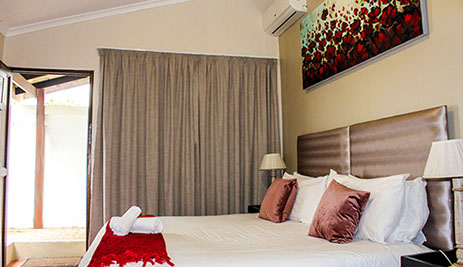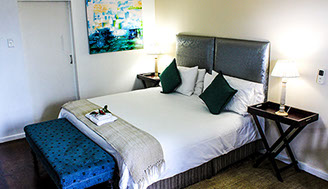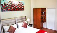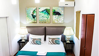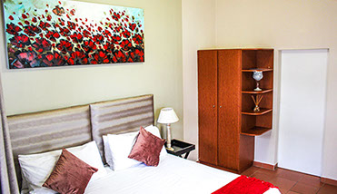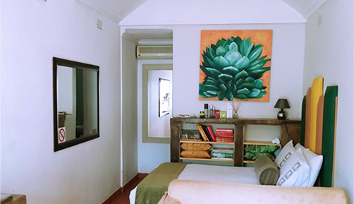 Self catering room with twin or king bed and a double sleeper couch. Unit 2 has a kitchenette and a small private garden. The unit can accommodate a maximum of 2 adults and 2 children.